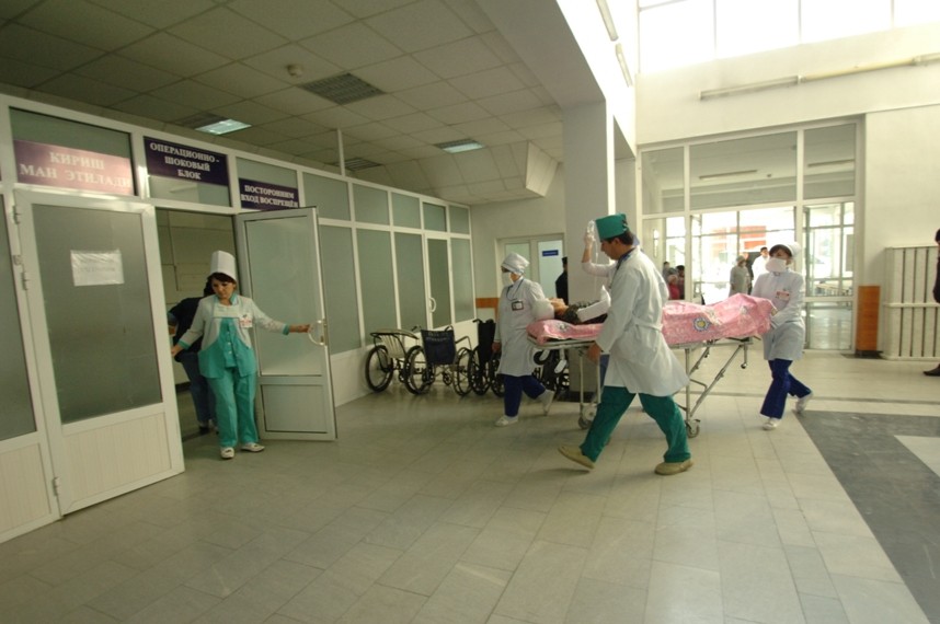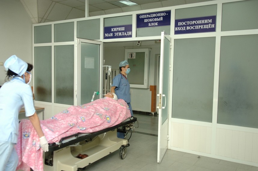 Ўткир жарохат билан беморлар учун қабул бўлими- ўткир травматологик ва нейрохирургик касаллик билан касалланган катта ёшдаги беморларни қабул қилиниши учун мўлжалланган.Бўлим мудири – Шухрат Зиядуллаевич Таджиев.
